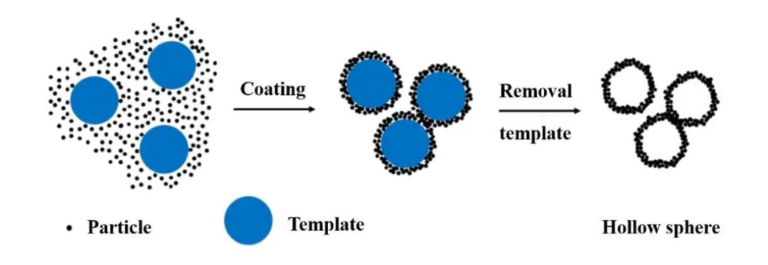 模板法是制備空心微球的一類常用方法[19,20]。模板法是在顆粒的制備過程中,采用液滴、氣腔和膠粒等模板作為顆粒形成的基底,通過吸附、沉淀、界面反應(yīng)等過程,在基底表面形成所需要的顆粒,再通過燒結(jié)氧化、化學(xué)腐蝕、氧化還原等過程去除模板,從而得到空心陶瓷微球[21]。模板法制備空心微球示意圖如圖1[21]所示。模板法具有原理簡(jiǎn)單、重復(fù)率高以及性能穩(wěn)定等特點(diǎn),近年來,越來越多的研究人員采用模板法進(jìn)行二氧化鋯空心微球的制備[11]。