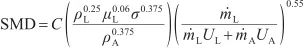 式中,SMD為索特爾中位粒徑,C為常數(shù)且和霧化器設(shè)計(jì)有關(guān),ρ, μ, σ, U和