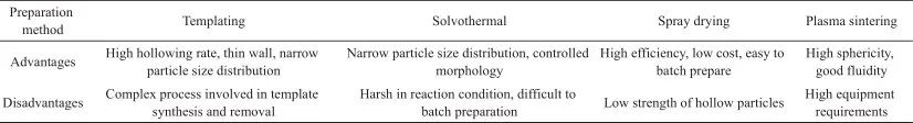 表1 ZrO2空心微球制備方法總結(jié)Table 1 The summary of preparation techniques of ZrO2 hollow microspheres